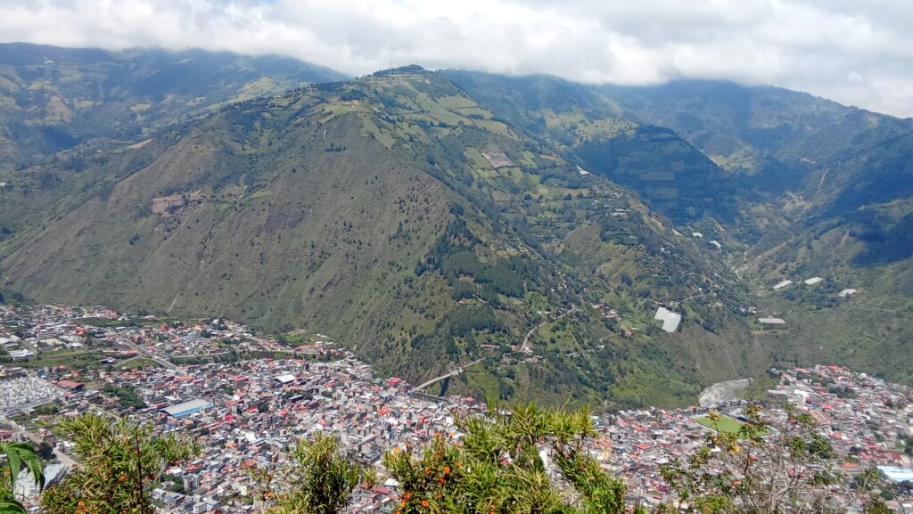 Después de un mes ya quise salir de Quito. Mi mejor amiga ecuatoriana me recomendó visitar una ciudad pequeña – Baños de Agua Santa. Pues decidí viajar a esta ciudad y no me arrepiento. Para llegar allá se tiene que tomar un autobús desde el Terminal Terrestre Quitumbe y el viaje dura un poco más de tres horas.